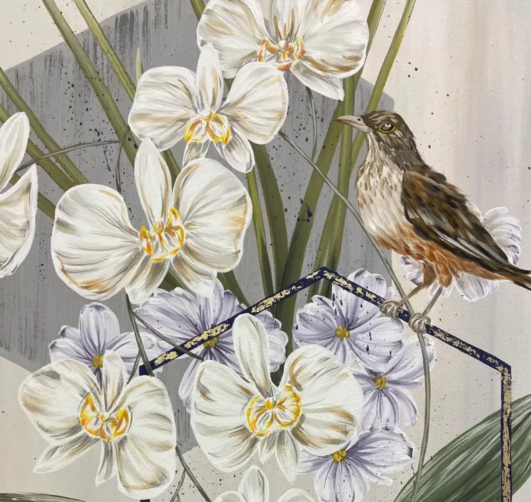 Orquideas, aloe y ave