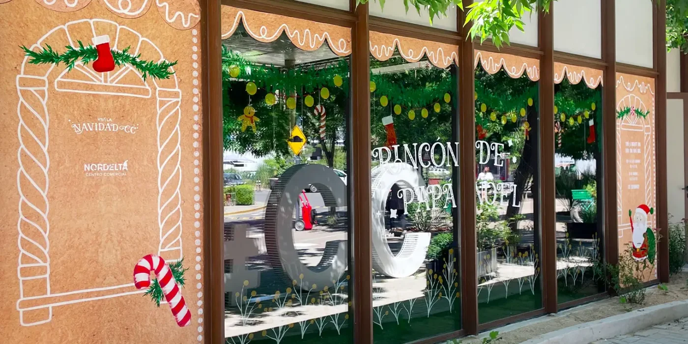 - Centro Comercial Nordelta: Diseñé el marco visual para el espacio de Papá Noel. Ante la falta de simetría por una ventana no instalada, utilicé mi experiencia en gestión de recursos para cubrir los laterales con vinilo textura “galletita”. Pinté sobre ellos simulando glaseado de jengibre, logrando un encuadre perfecto para las fotos de los niños.